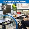 Two-piece desktop with reversible corner allows flexible setup. Large surface fits dual monitors, with a cloth drawer, cable management system, and 2 utility hooks for ultimate organization.