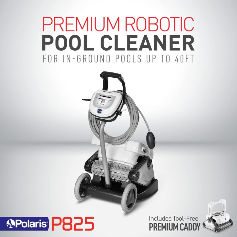 The Polaris P825 Robotic Pool Vacuum delivers powerful cyclonic suction, wall-climbing action, and mess-free debris removal—complete with a 50ft cable and storage caddy for effortless inground pool maintenance.